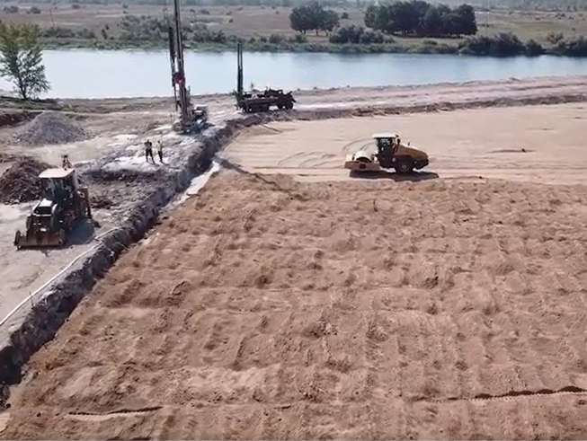 При закрепления химически агрессивных просадочных грунтов экологи использовали технологию Jet-grouting – струйную цементацию грунтов, которую адаптировали для возведения водонепроницаемого экрана по периметру. Суть такова: для создания грунтоцементных свай от водоупора до поверхности земли в толщу накопителя за пределами зоны размещения отходов под большим давлением нагнетается специальный цементный состав с реагентами, подобранными в зависимости от типа геологического элемента. Всего понадобилось четыре с лишним тысячи свай, которые последовательно бурились с осени 2022 до весны 2024 года.